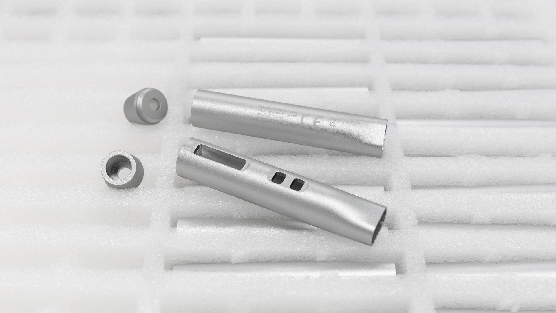 After machining, the parts are bead blasted, where fine abrasive particles are projected at high speed onto the aluminum to smooth out small machining marks and create an even texture. The parts are then anodized, which gives the Pen its final clean satin look and provides a hardened outer surface. Finally, each part is laser marked. This is not strictly required, since certification markings can legally appear only on the packaging or manual if they do not fit on the product, but I wanted the Pen itself to feel complete and professional. Marking a cylindrical part is not trivial because of laser focus, but the supplier handled it perfectly.
